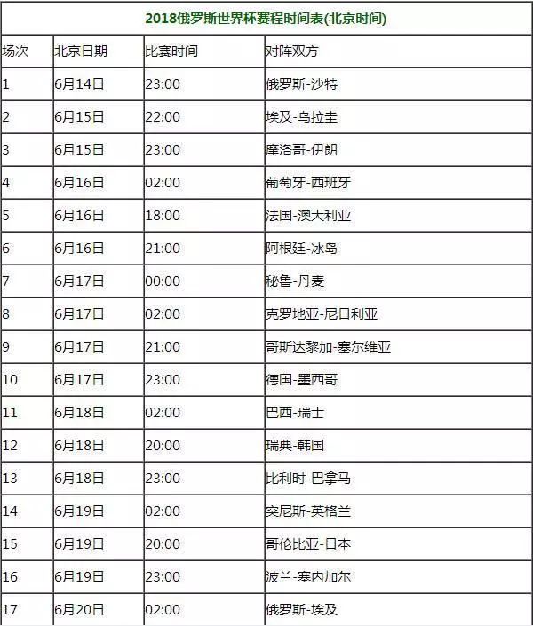 2018俄羅斯世界杯賽程時(shí)間表一覽!